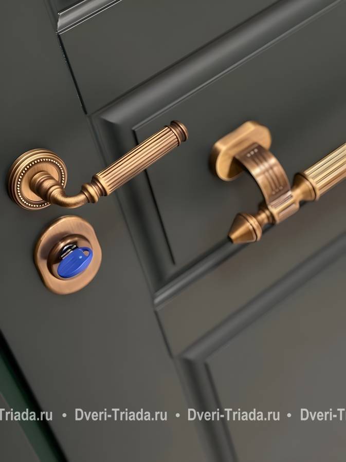 Металлическая входная группа с терморазрывом, боковыми остекленными вставками и кнокером (МДФ RAL серый) Арт-256