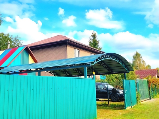Арочный навес для авто из профнастила голубого цвета Арт-694